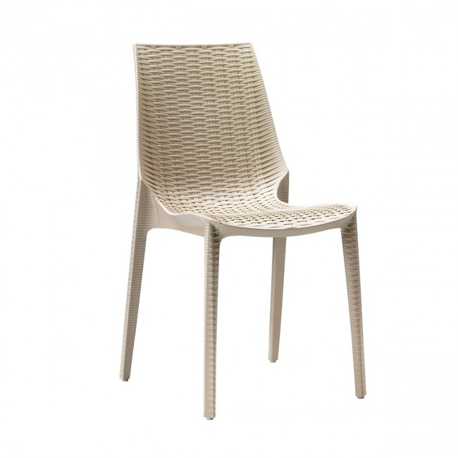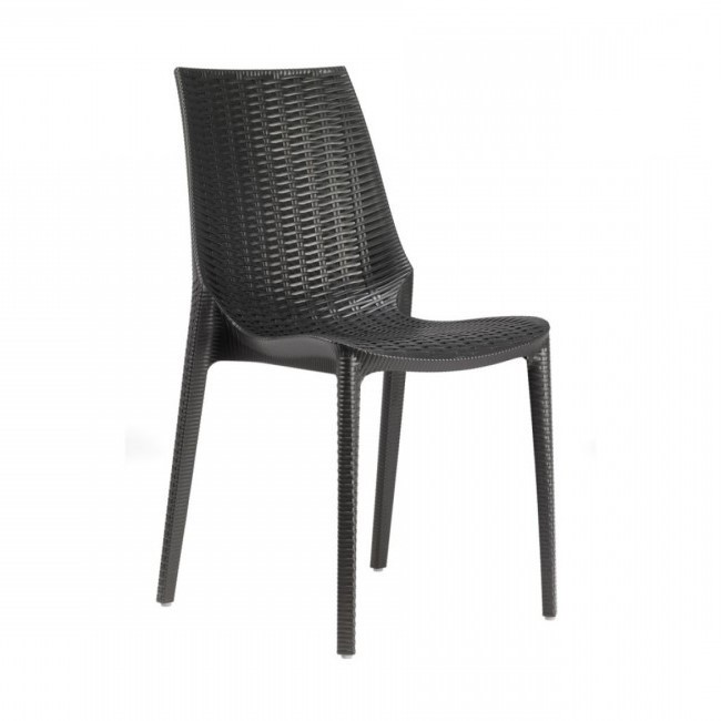 Stackable chair in woven patterned polypropylene. Reinforced with fibreglass.