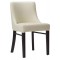Classic dining and lounge chair featuring a solid beech wood frame in a wenge stain finish and upholstered in a ivory faux leather