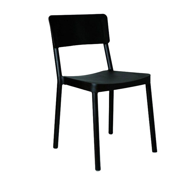 Chair for indoor and outdoor use. Injected in fiberglass with PP using gas-assisted molding technology. Stackable UV protection. Net weight 3.36 kg.