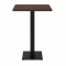 Stylish slimline flat steel table base, poseur height with a 680mm square wenge lamanite top.