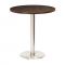 Stainless steel round dining height base with a walnut 680mm round laminate top.